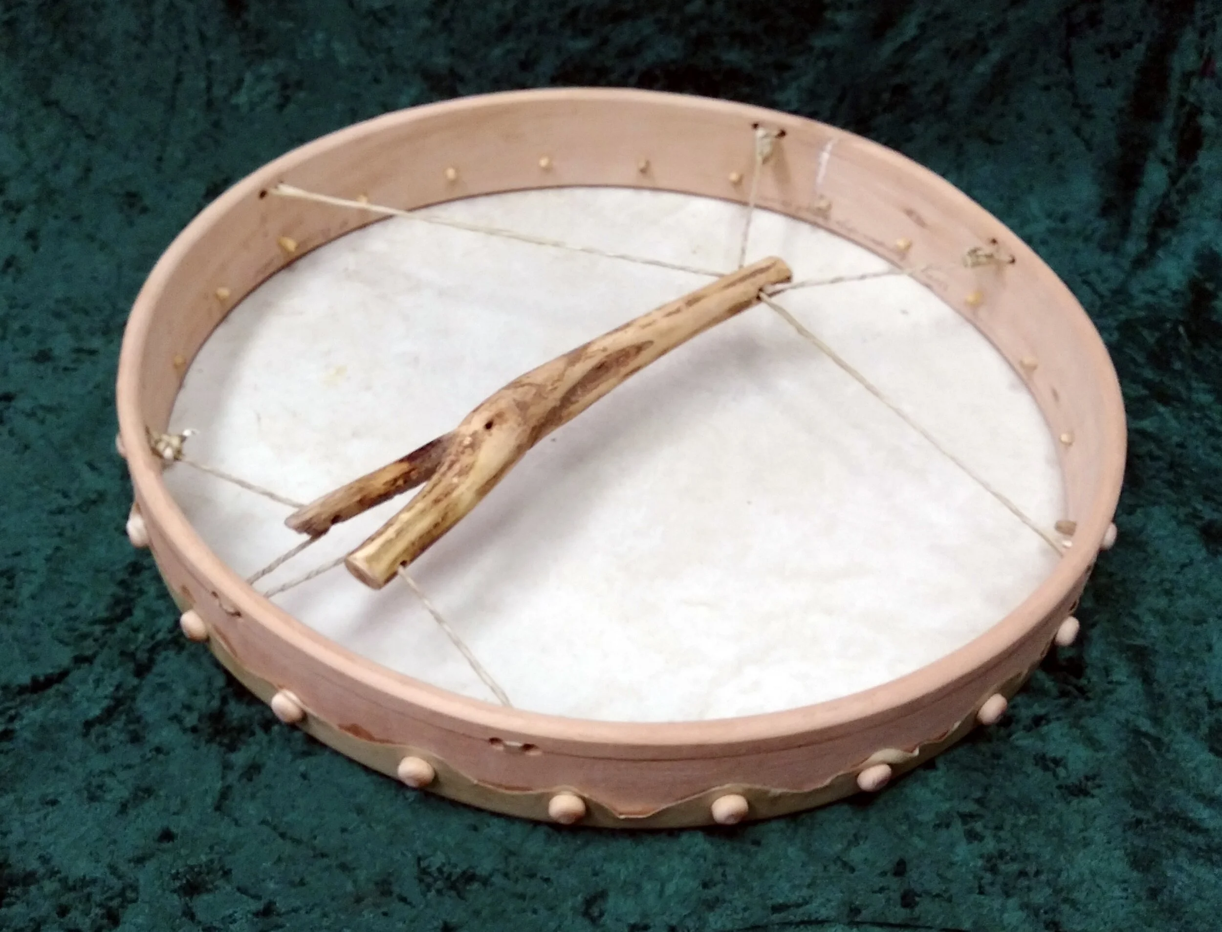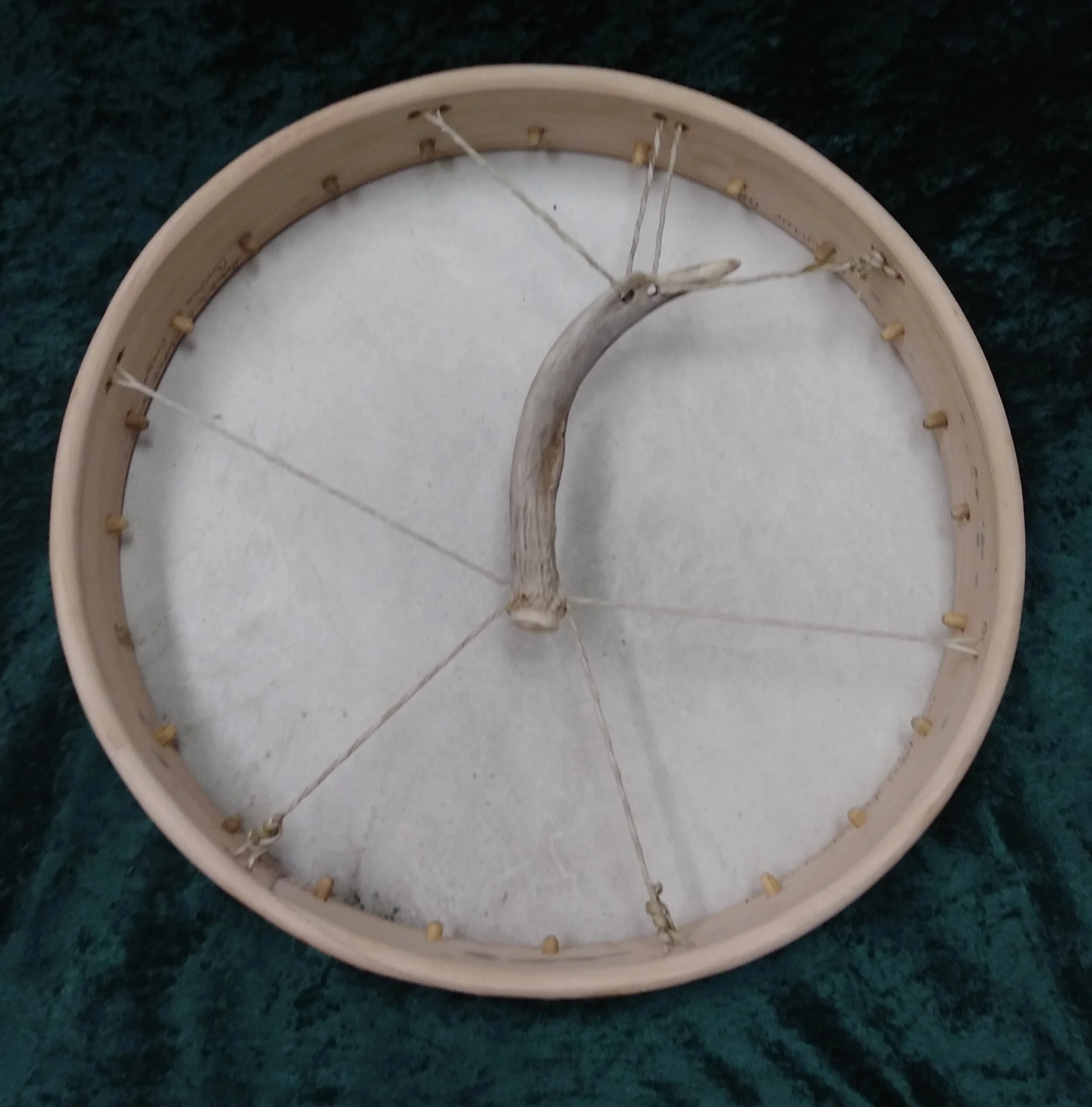20" Reindeer Rawhide European Style Pegged Shamanic Drum on a Cedar Hoop with a Wood or Antler Handle